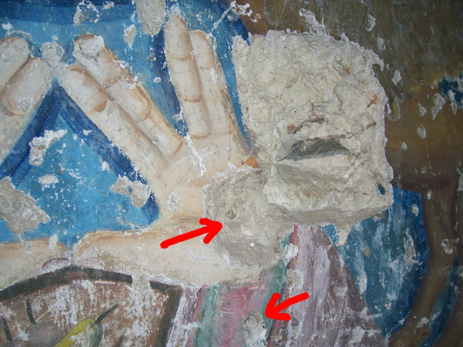 В здании до сих пор сохранились отметины от пуль на декорированном в стиле барокко арон а-кодеше оккупанты развлекались, используя его как мишень.